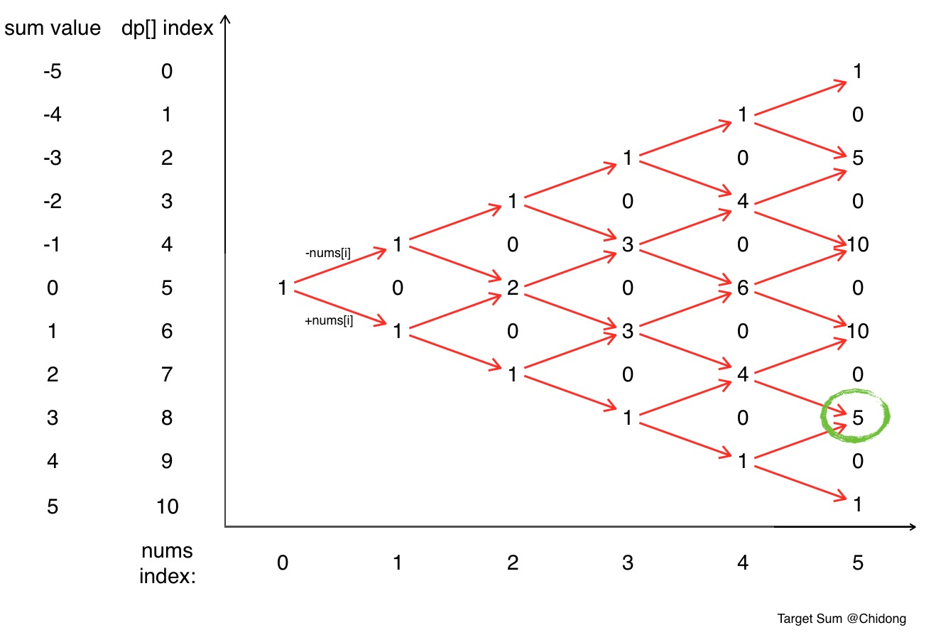 dp[i][-nums[i - 1] + j][1] += dp[i - 1][j][1];