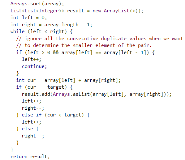 Solution: i应取duplicates的第一个,j应取duplicates的最后一个,以免跳过了情况